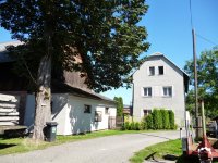 Štít obytné části mlýna, pohled z hráze rybníka od severu, 18. 7. 2016, © Pepino