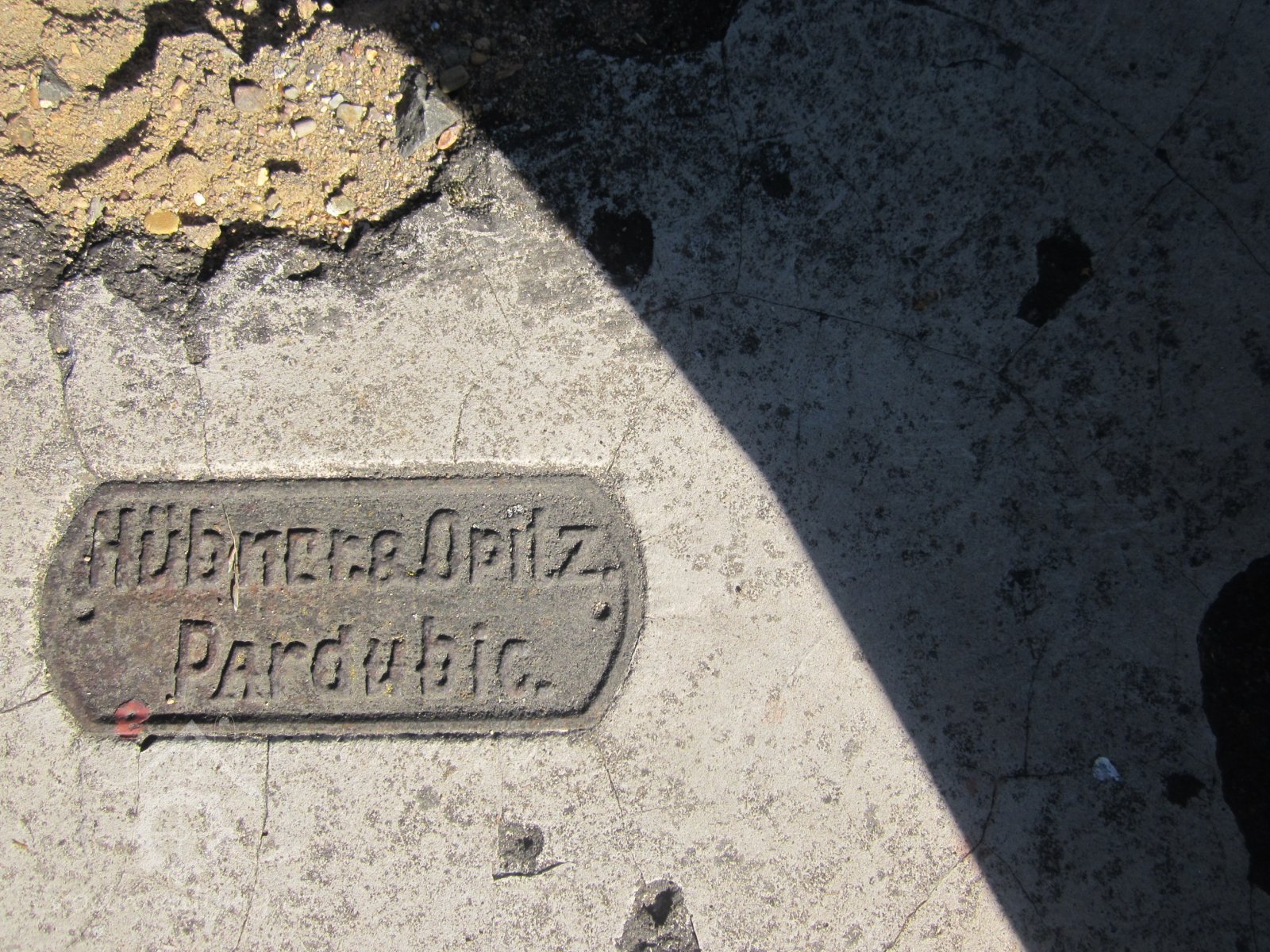 Martincův mlýn, mlýnský kámen ? s nápisem Hübner a Opitz Pardubic, srpen 2016, © eva48
