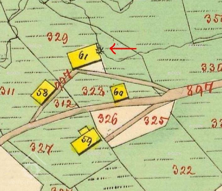 Indikační skica, výřez, 1843, © viz archivnimapy.cuzk.cz