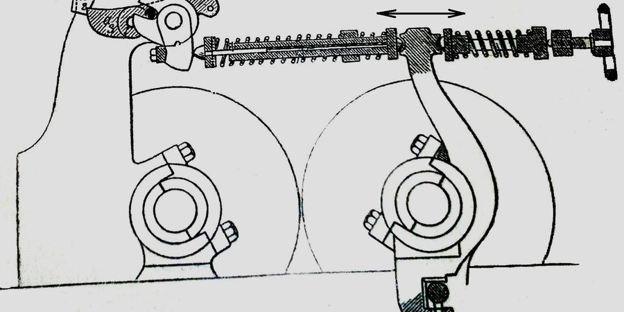 Detail – seřizovací mechanismus válců vedle sebe. Obrázek z časopisu Mlynář, 1905.