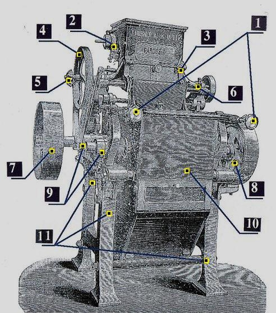 ♦ Stroj našel uplatnění většinou na větších mlýnech s několika stolicemi.