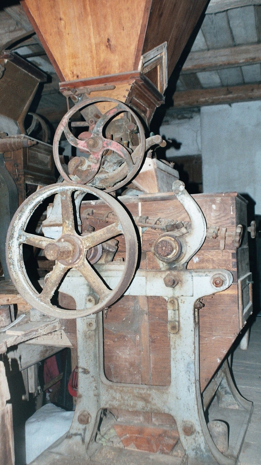 Mlecí stolice s rýhovanými válci z r. 1890, fa J. Hübner -K. Opitz - Pardubice, mlýn Světce čp. 13 (JH), D. Veverka 2012.