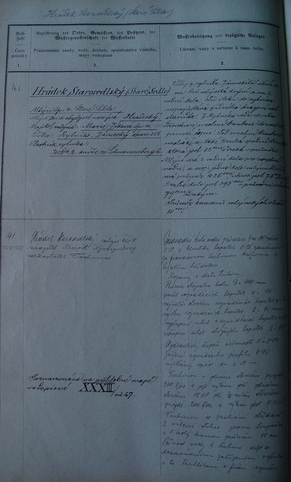 Ukázka z vodní knihy bývalého Blatenského okresu. Uloženo v SOkA Strakonice.
