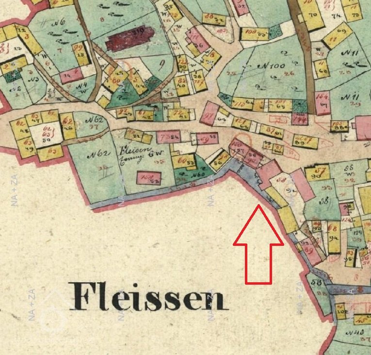 Mlýn uveden již na 1. VM. v 19. stol. náležel k majetkům Johanna Adama Geipela spolu s koželužnou a pilou. Mlýn byl poškozen válečnými událostmi, v 50. letech byl stržen. Dnes je zde výběh pro dobytek.
