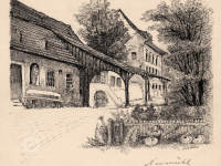 na dvoře mlýna jsou dvě budovy - mlýn a hospodářská budova
