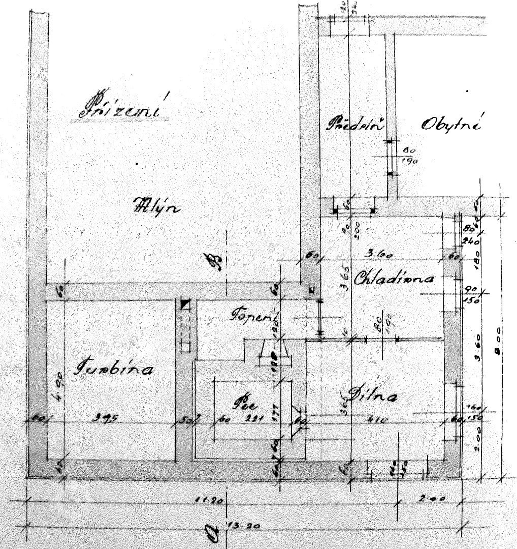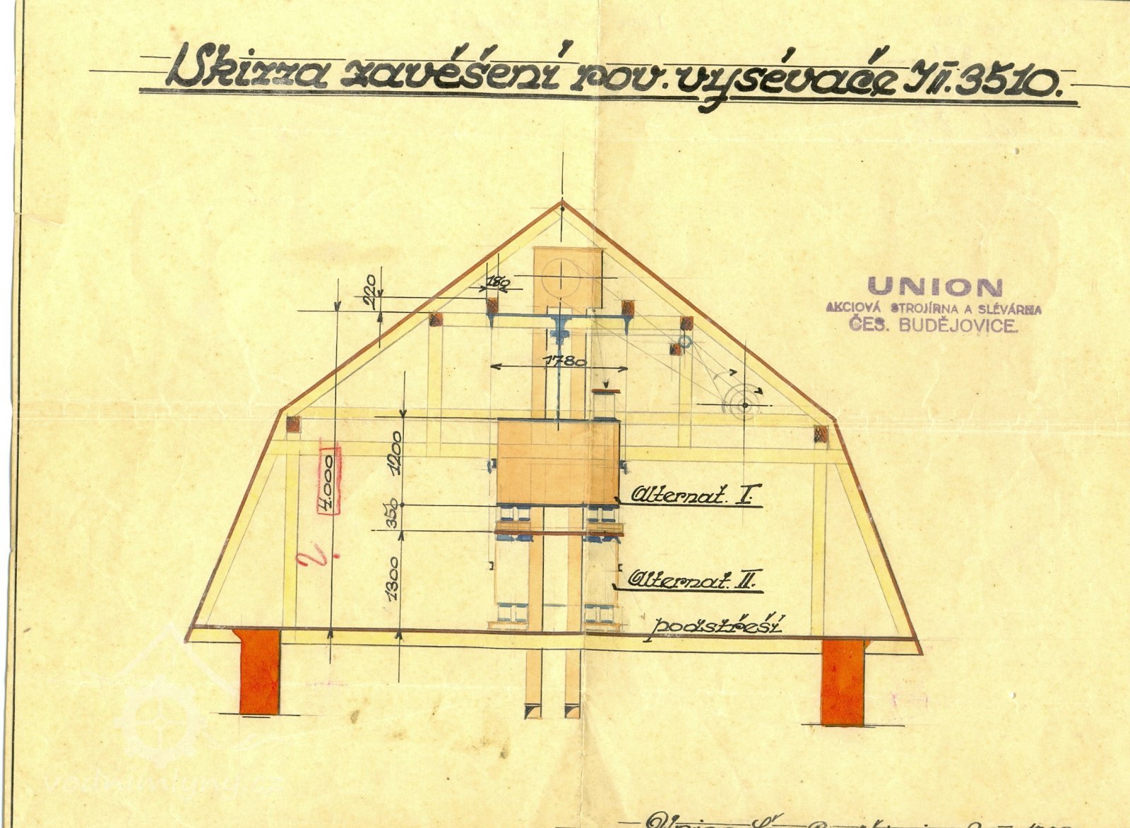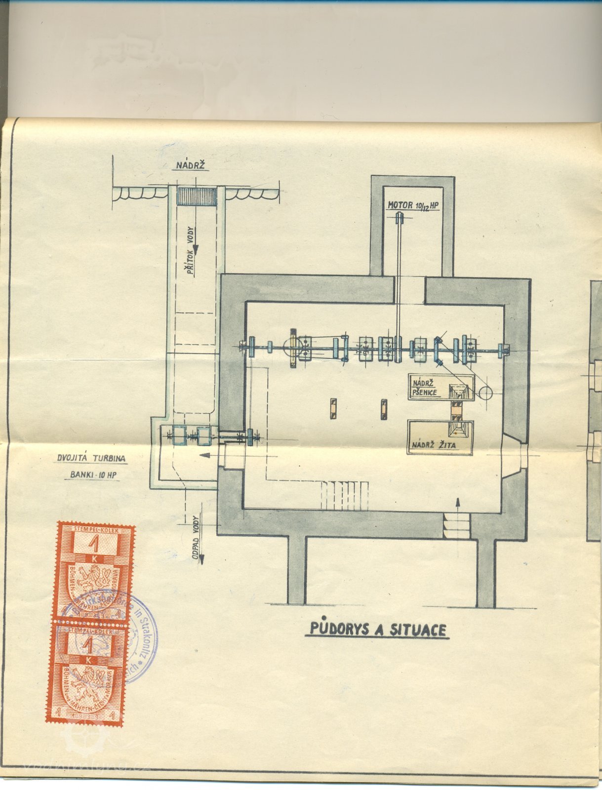 Popis1834 pořízeny 2 turbíny systému Bánki, každá hkltnot 115 l/s, spád 4,3 m, celkový výkon 10 HP