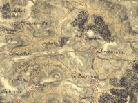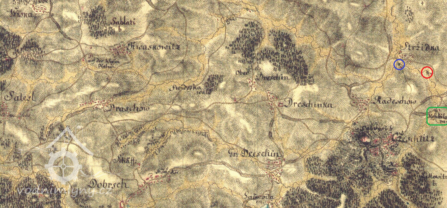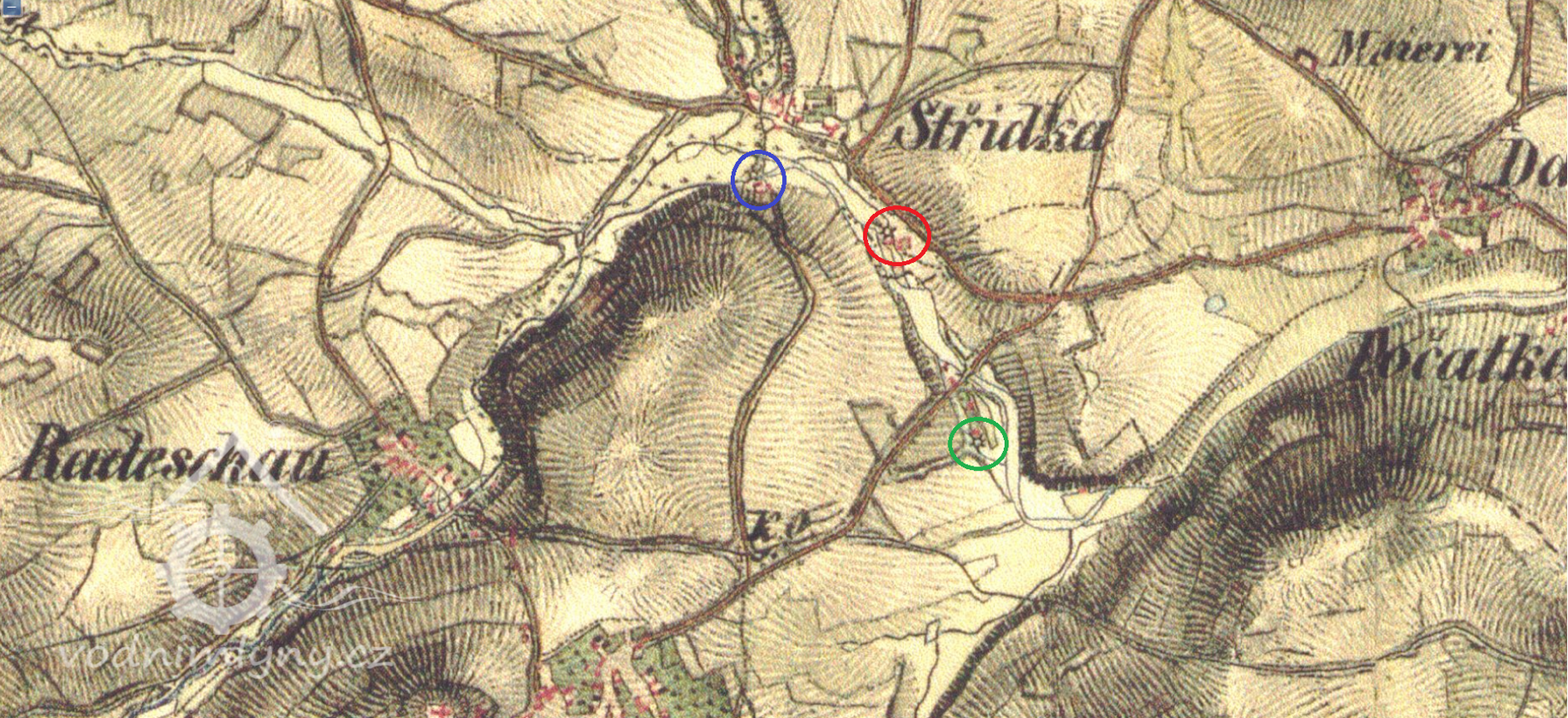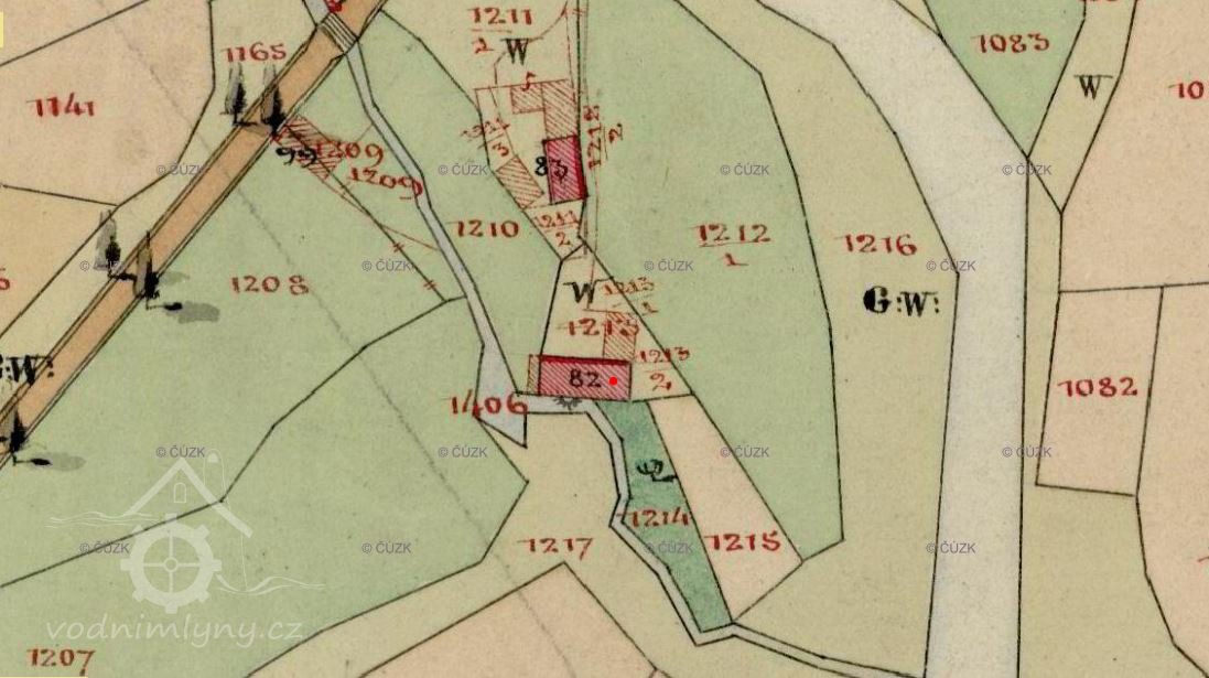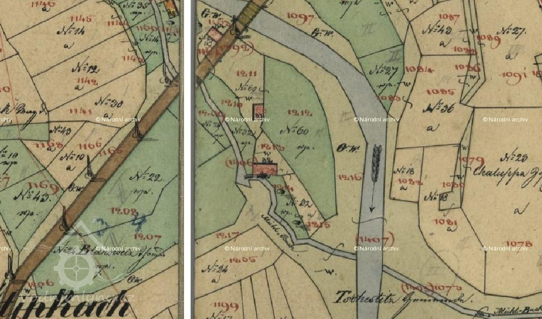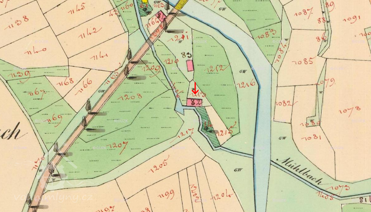 Tereziánský katastr: rustikální mlýn o 1 kole a 1 stoupě na nestálé vodě