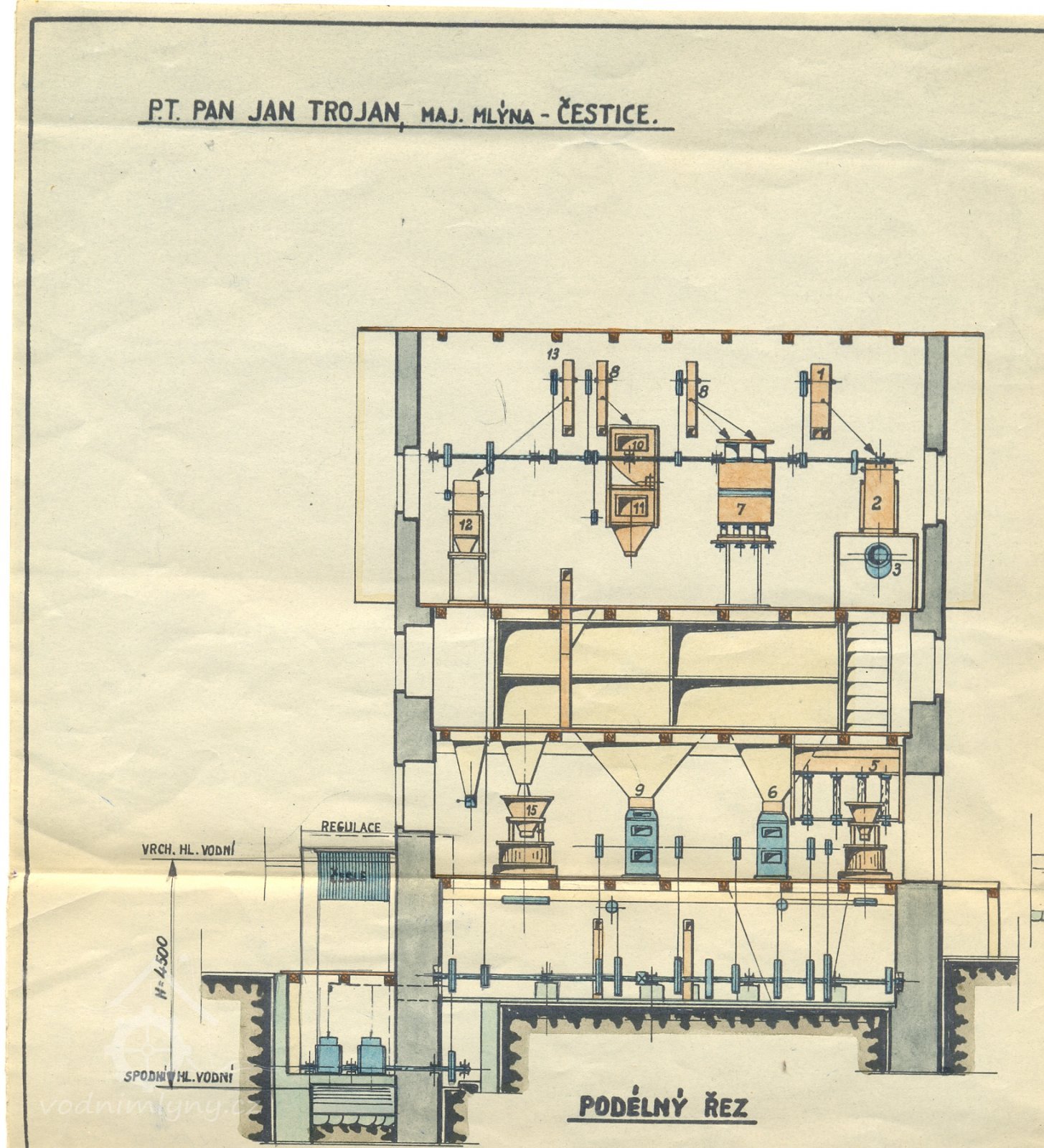 5.10.1936 zjistil čestiský vrchní strážmistr Mrkvička, že mlynář staví 2 turbíny bez vodoprávního povolení, již má vybetonovou podlahu a postavené šalování stěn. Mlýnské kolo s vantroky bylo již vybouráno, 29.9. nastoupil zednický mistr Votruba ze Střídky. Tvrdil, že prý myslel, že povolení nepotřebuje, když se nezmění výše vody. O dodatečné povolení požádal až pod hrozbou trestního řízení 17.4.1940, v květnu byly turbíny kolaudovány.