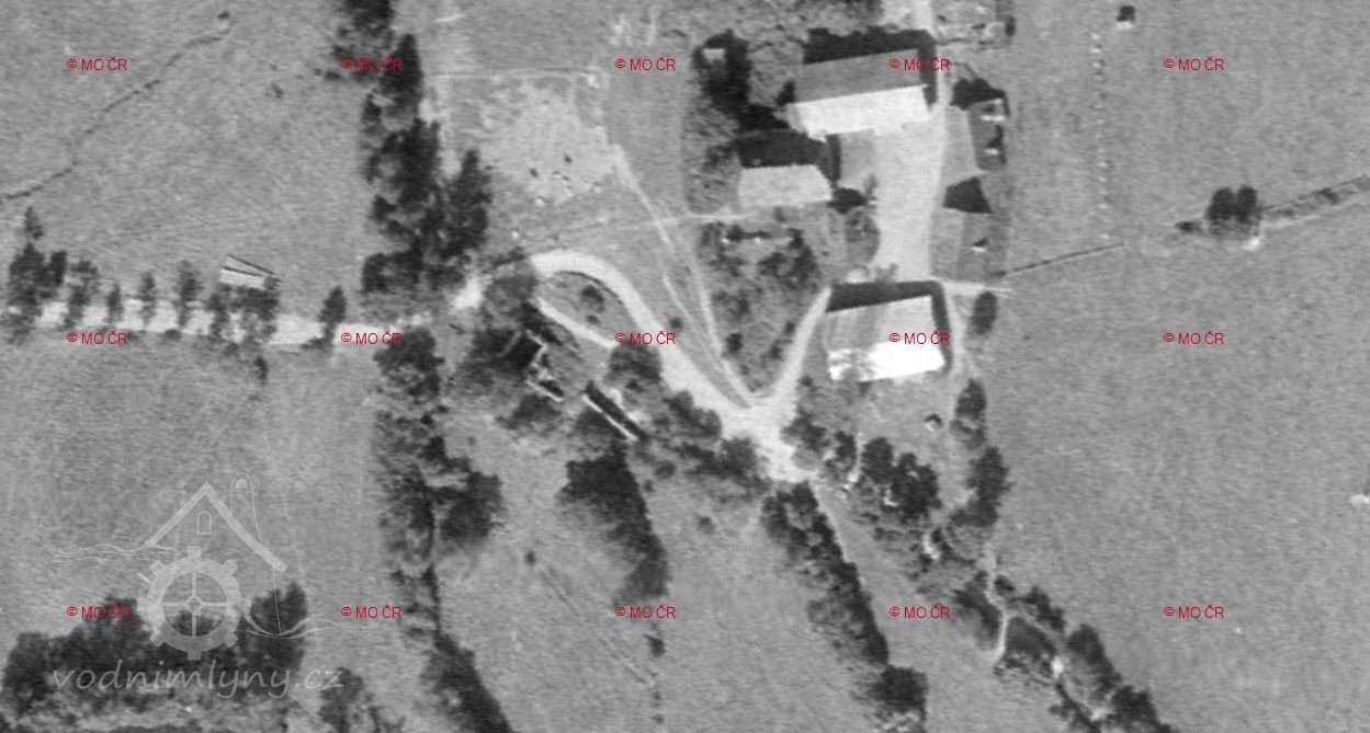 Jistě stál mlýn ještě v roce 1949 (letecké snímkování), v roce 1959 již v troskách.
