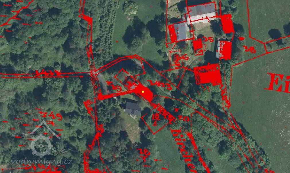 PopisV roce 1930 pohání mlýn a pilu dvě kola na svrchní vodu s průtokem 0.076 a 0.098 m3/s, spádem 4.2 a 2.9 m o výkonu 3.4 a 2.4 HP.