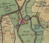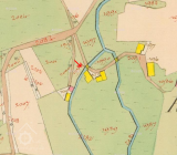Mlýn čp.155/st.p.198/2 v k.ú.Stachy.Původní situace je zakreslena na mapě Stabilního katastru Čechy:7217-1, mapový list č.004.- viz.snímek výše.K uvedené usedlosti ještě majetkově patřily následující stavby/stav r.1945/: dům-obytné a hospodářské stavení čp.256/st.p.198/1,zbořeniště domu čp.158/st.p.195,dům čp.154/st.p.197,pila/st.p.199 a kolna/st.p.231.