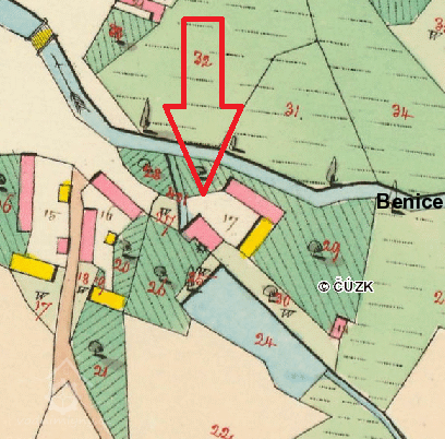 1654 Berní rula uvádí rozbořené a pusté mlynářské chalupnické stavení o 18 stryších