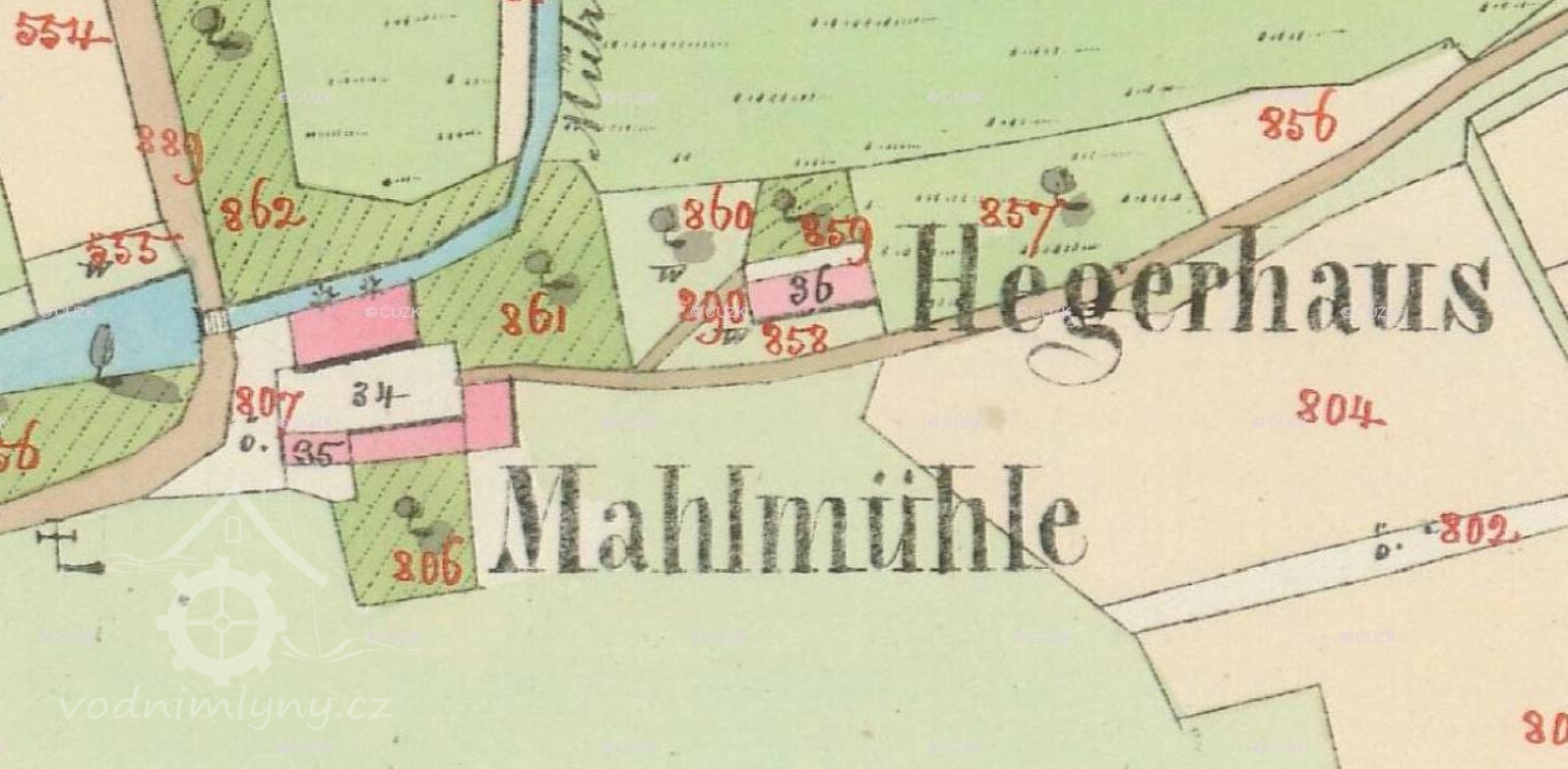 Mlýn nad hájovnou v Plchově, dnes z něho zbyl jen hospodářský trakt, mlýnice radikálně přestavěna na obytnou vilku. Do náhonu byla sváděna důlní voda z okolních uhelných dolů.