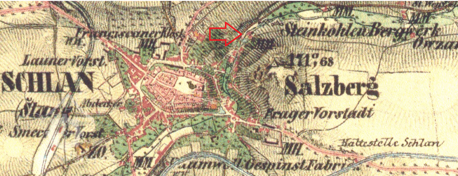 Velký mlýn na úpatí Slánské hory severně od historického centra Slaného, 1883 přestavěn na páru.