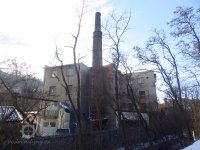Objekt továrního typu se samostatně stojícím 25 m vysokým komínem.