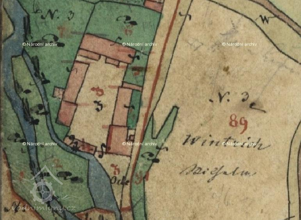 1880 majitel Vilém Wintrych, osazena vodní značka VV 1886