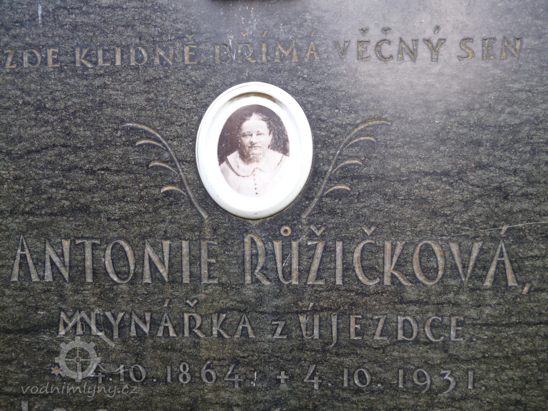 Koncem 19. a začátkem 20. století zde hospodařil František Růžička narozený roku 1858. Oženil se s Antonií Viktorovou z Paběnic. Antonie se narodila roku 1864 jako jeden ze 4 sourozenců Viktorových, byla tetou místního významného rodáka z Paběnic Dr. Ing. Eduarda Viktory, stavitele známé „Viktorovy vily“ v Paběnicích. Manželé František a Antonie Růžičkovi měli tehdy rozsáhlé hospodářství. K mlýnu patřily pole, louky, lesy, pila a také cihelna, která v letech 1891-1892 dodávala cihly na stavbu kostela ve vedlejších Petrovicích.
