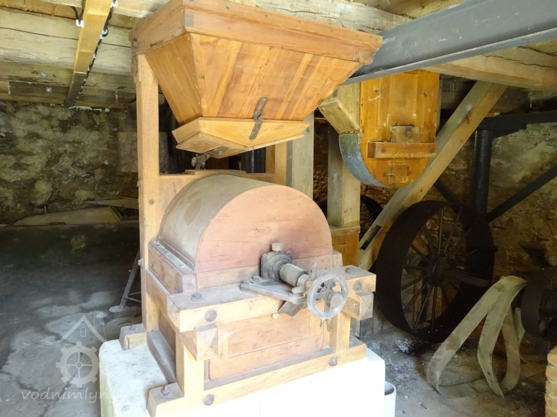 PopisVodní kolo průměr 4 m, šířka mezi věnci 57 cm a výška korečků 23 cm. Užitečný spád vodního kola 4,11 m, otáčky při středním zatížení 10/min; výkonost kola 3,67 HP