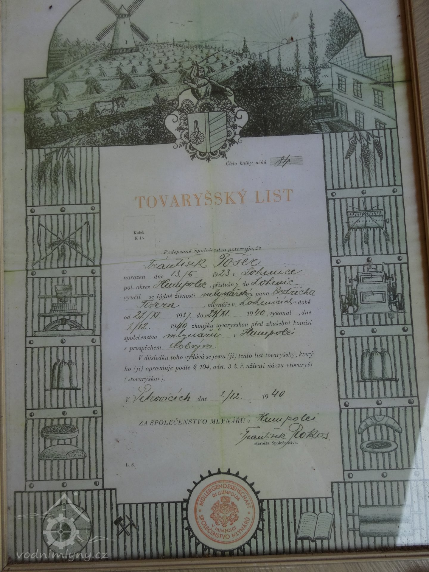 Mlýn uveden v Seznamech vodních děl republiky Československé z r.1932, maj. Jaroslav Tošer