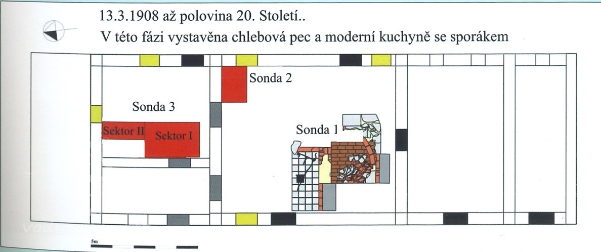 3) po požáru 1908 - zděná fáze bydovy s roubeným obytným patrem. Ve středním obytném prtostoru, kde byla situována kuchyně, došlo k výstavbě chlebové pece a kuchyňskéého sporáku. Po roce 1945 zanikl opět, tentokrát již definitivně.