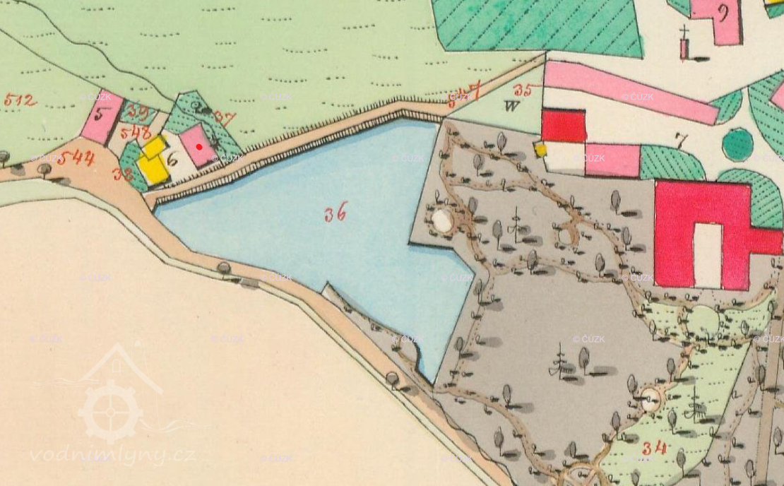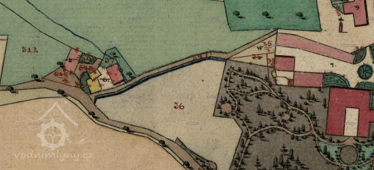 V tereziánském katastru zrhuba k roku 1757 je uváděn mlýn se dvěma vodními koly, stoupou a pilou.