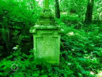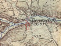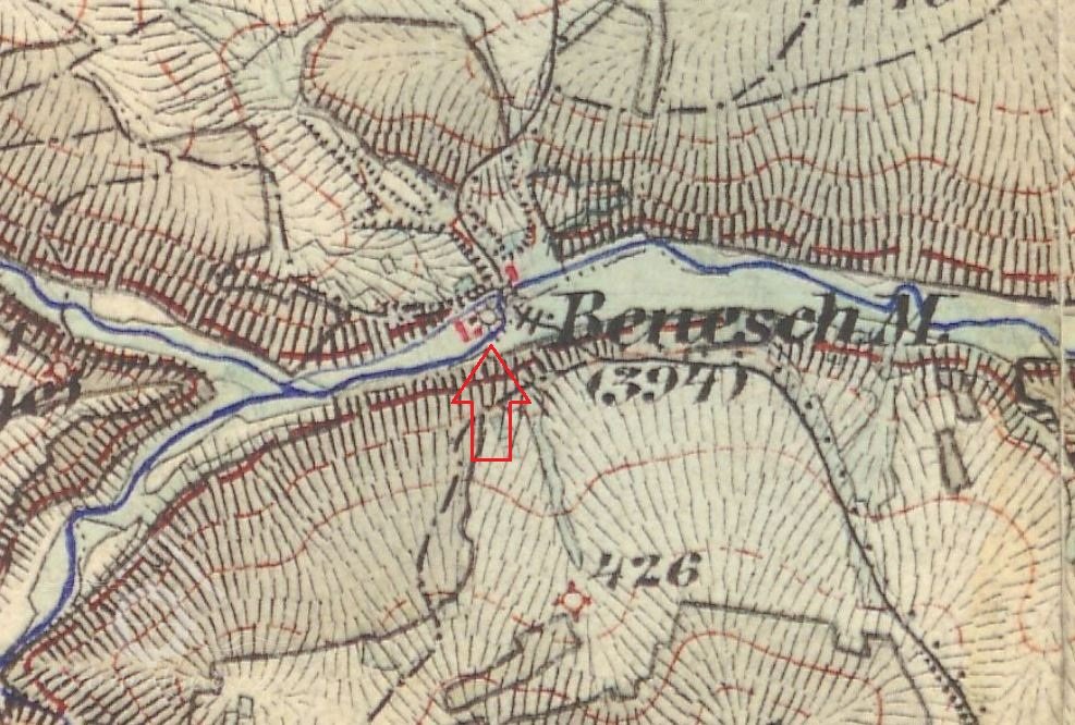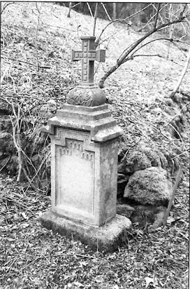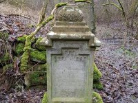 Nápis na náhrobku J.Flossmanna: "Hier ruhet Johann Floßmann aus der Benischmühle starb im 35. Lebensjahre den 15. Juli 1869. Seine trauende Gattin und 2 Kinder hinterlassen".