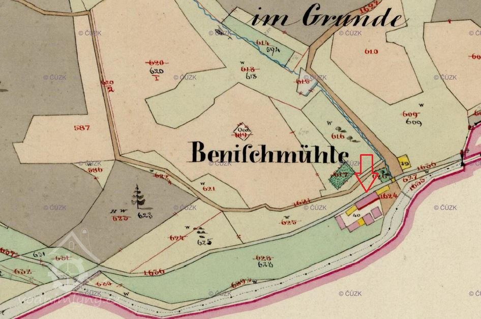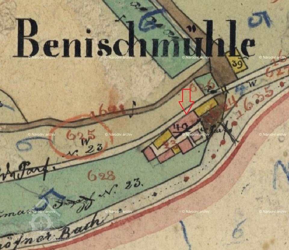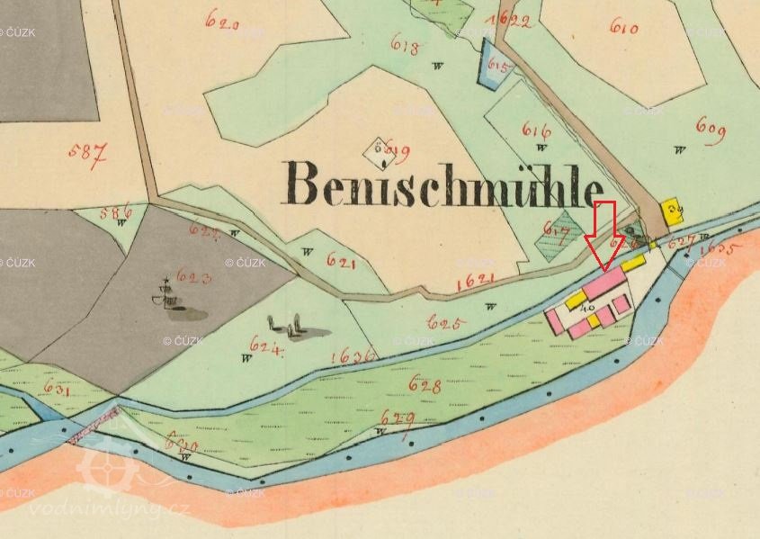 Ve vodní knize je k roku 1874 Benišův mlýn popisován jako mlýn o dvou složeních, majitelkou byla vdova Marie Flossmannová, která se patrně neprovdala a vedla celých 28 roků mlýn sama. V roce 1897 přepsala Marie mlýn na syna Johanna, narozeného v roce 1869. Johann Flossmann měl za manželku Margarethu, rozenou Schafferovouo.
