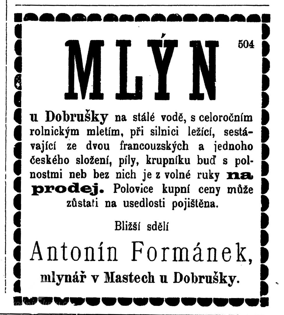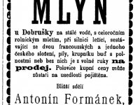 1896 Antonín Formánek, mlýn nabízen k prodeji