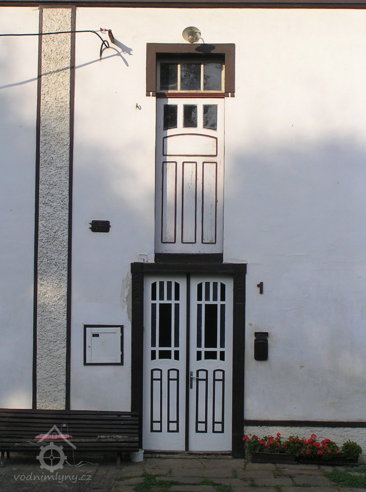 Pozoruhodné secesní architektonické pojetí mlýnské budovy z roku 1921, kde jsou architektonicky řešení i otvorové prvky, což se odrazilo ma podobě vstupních dveří a dveří vyskladňovacího otvoru. (RUr)