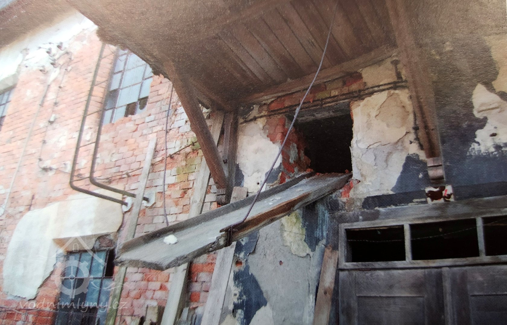 mlýn v dezolátním stavu, střecha hrozí zřícením