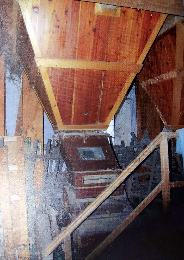 1941 k celé šířce přistavěno skladiště na obilí v přízemí a pytlované mlýnské výrobky v poschodí, rozměry 5 x 12 m do mansardové střechy