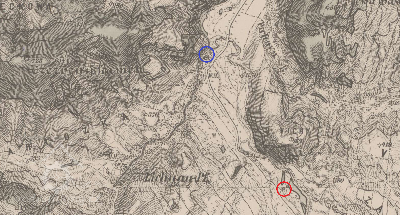 2,7 km východně od kostela sv. Petra a Pavla v Lichnově