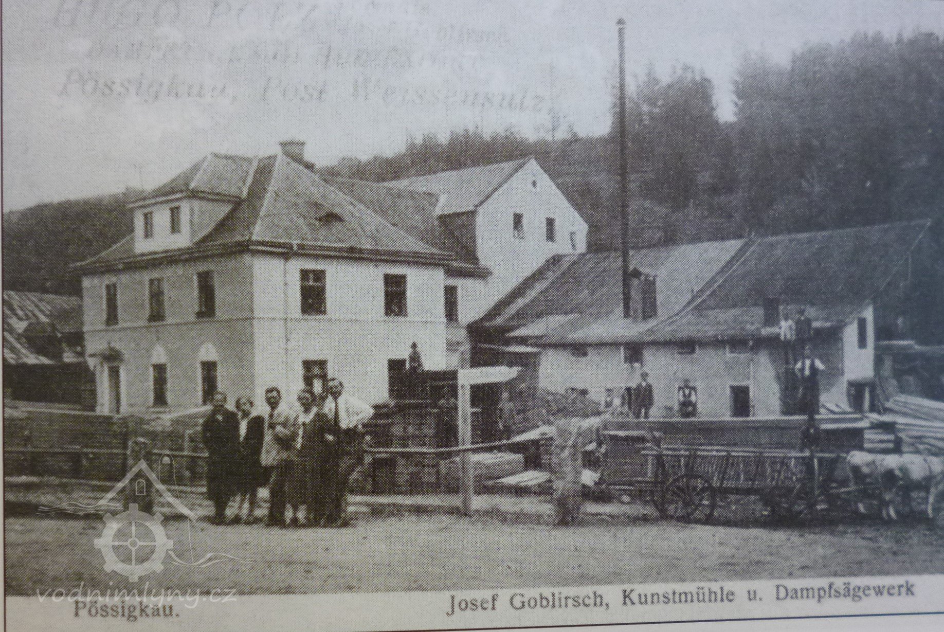 Dle sčítání z roku 1921 byl majitelem čp. 5 Josef Goblirsch (narozen 1878). S ním zde žila manželka Anna (1875) a dcery Franziska (1901) a Anna (1912). S nimi zde žily dvě švagrové Marie a Fanny Schlöglové. Na mlýně pracovali knechti Michael Bäuml a Wenzl Schmidt, kteří se starali o dobytek, dále záměčník Anton Hanslik a mlynářský pomocník Anton Säckl. V samostatném bytě bydlel stavební technik a zaměstnanec Goblirschovi firmy Johann Martinka s manželkou Marií. Zaměstnanci pily sem docházeli za prací ze svých domovů.
