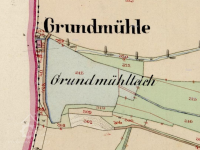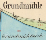 1843 - mlýn měl čp. 34. Majitel mlýna není na indikační skice uveden. Mlýnský rybník - Grundmühlteich patřil hraběti Heinrichu (Jindřichu) Chotkovi.