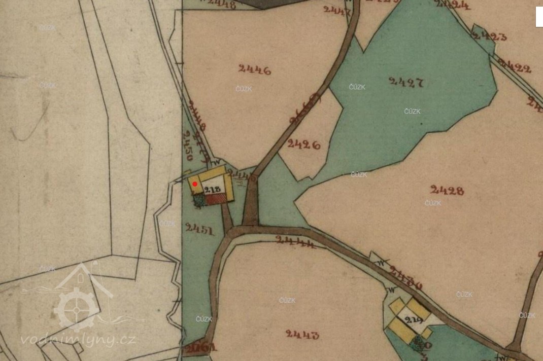 Popis1930 - 1 kolo na svrchní vodu, průtok 0.065 m3/s, spád 4.1 m, výkon 2,31 HP.