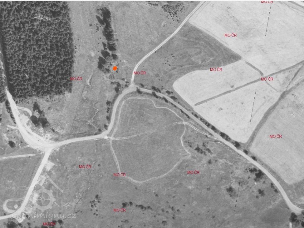 Zaniklý mlýn zbořený spolu s obcí Slatina v 50. letech z důvodu zřízení pohraničního pásma. Nachází se asi 25 m na východ od severního cípu zdejšího rybníka. Rybník byl zřízen až po zboření mlýna mezi roky 1968 - 1998.