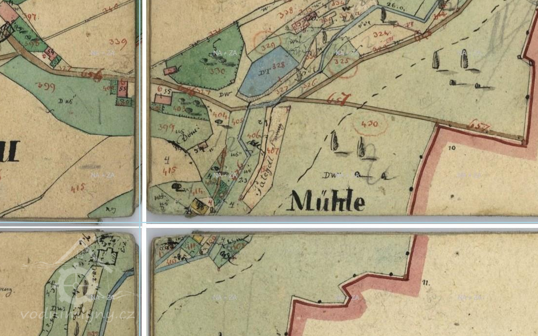1651 Soupis poddaných podle víry: mlynář Jiří Gährig (34 let), žena Kateřina (29), oba poddaní katolíci