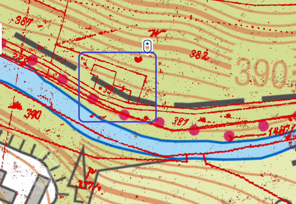 Patrně podzemní náhon a odpad (není vyznačen na katastrální mapě)