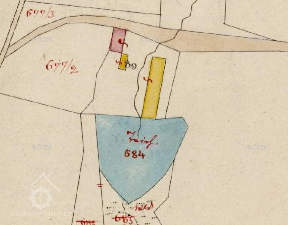 Popis1930: 1 kolo na svrchní vodu, hltnost 0,75 m3/s, spád 1 m, výkon 6,5 HP