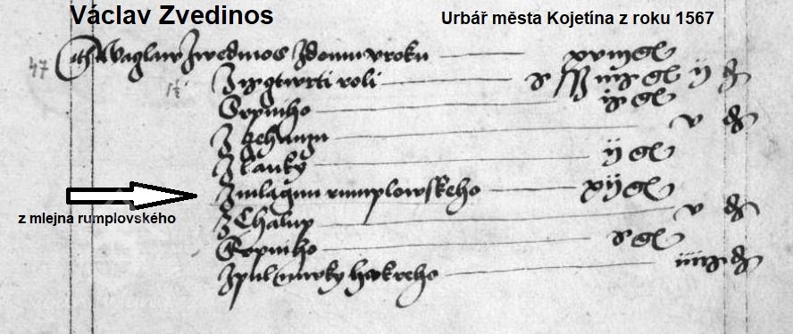 Dnes již neexistující mlýn, o kterém je zmínka v Urbáři panství města Kojetína z roku 1567. Za působení mlynáře Václava Zvedinose mlýn vyhořel, avšak po obnově jeho provozu, byl v roce 1579 vrchností zrušen.