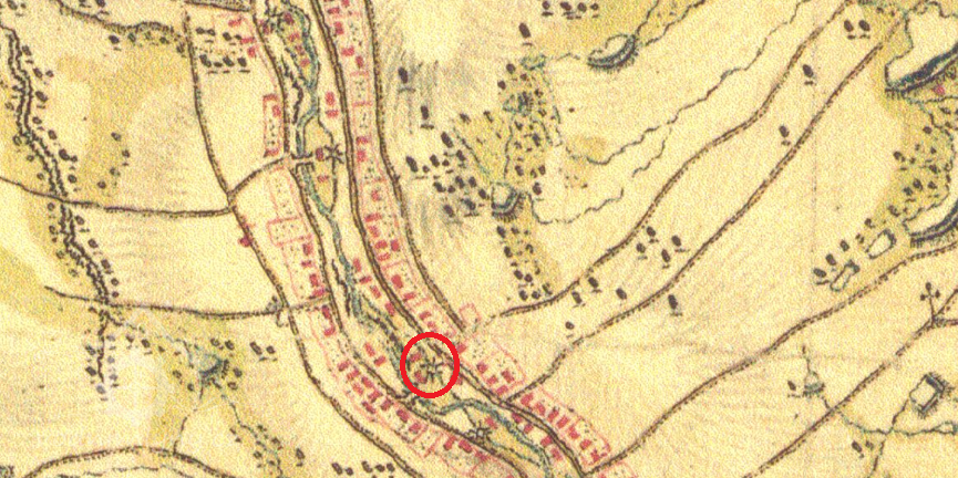Vyznačen na mapě I. vojenského mapování.