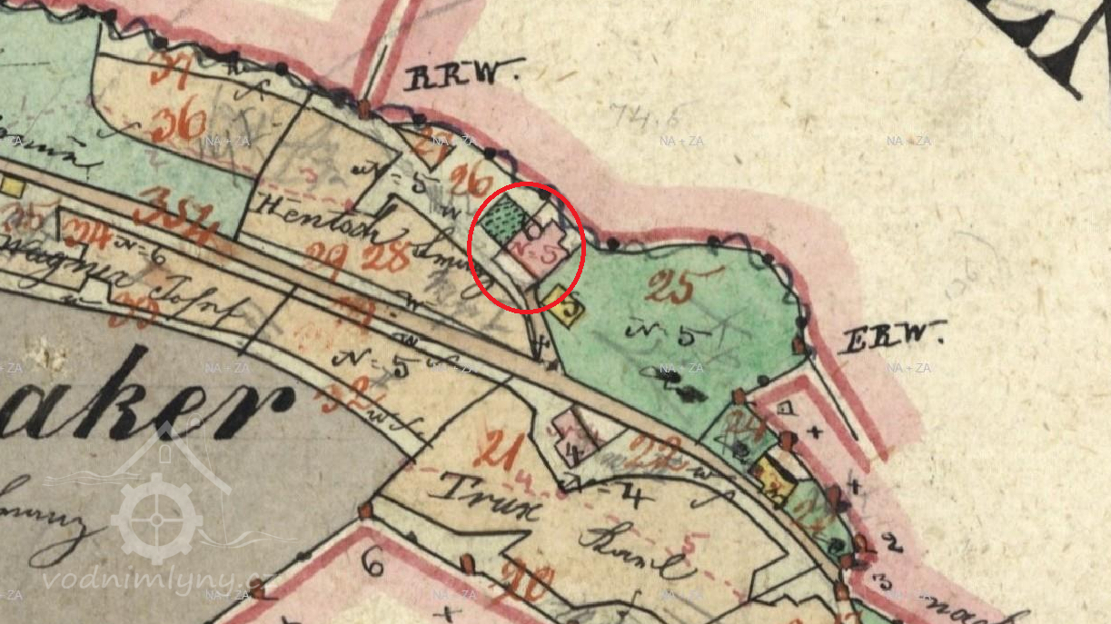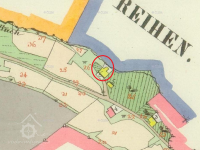Na Císařském povinném otisku vyznačena budova ze spalného materiálu, na Indikační skice a Originální mapě stabilního katastru vyznačena zděná budova.