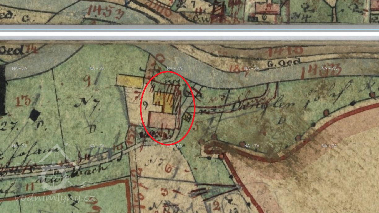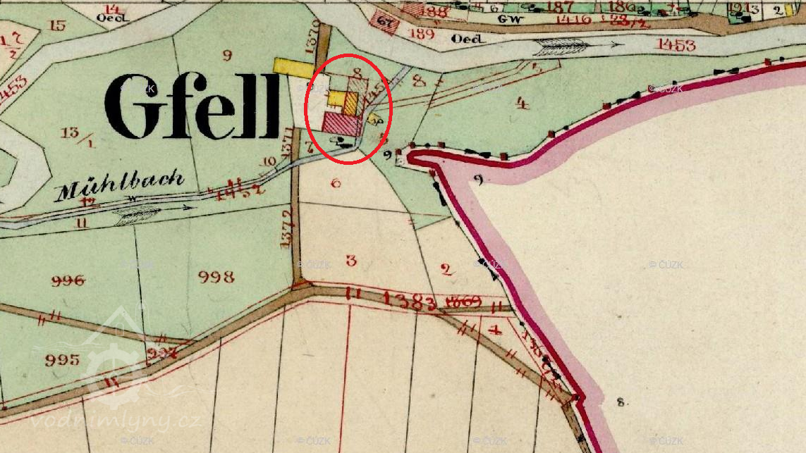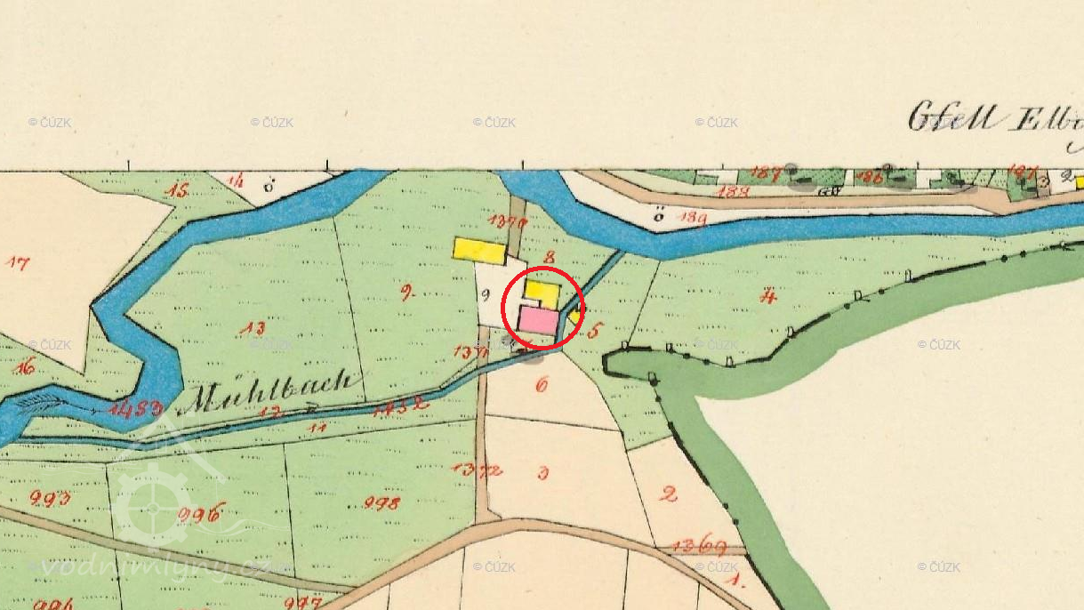 Popis1930 - 1 kolo na svrchní vodu, průtok 0,140 m3/s, spád 2,9 m, výkon 3,3 HP.