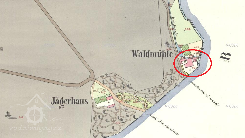 Na aktualizaci mapy III. vojenského mapování z roku 1934 už je vyznačen jen hotel, mlýn ne.