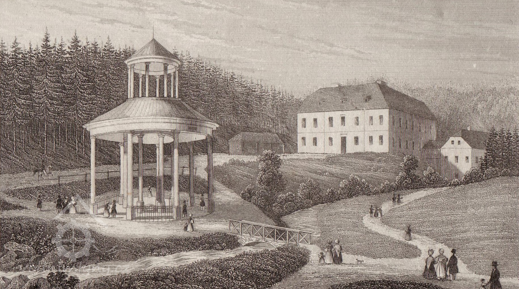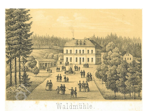 Již v roce 1837 je uváděn Lesní mlýn (Muhlen- Wirthaus) s kuželkářskou dráhou jako oblíbený cíl vycházek a to také díky bezprostřednímu sousedství Lesního pramene. Oficiální provoz hostince a kavárny je však uváděn až za vlastnictví rodiny Dietlů v 50.letech 19.století. Vznik hotelu v roce 1877 je taktéž zánikem mlýnského provozu . Pod vedením Josefa Hanslíka ze Žatce (zetě Dietlů) se stává z Lesního mlýna velice oblíbená kavárna s restaurací.