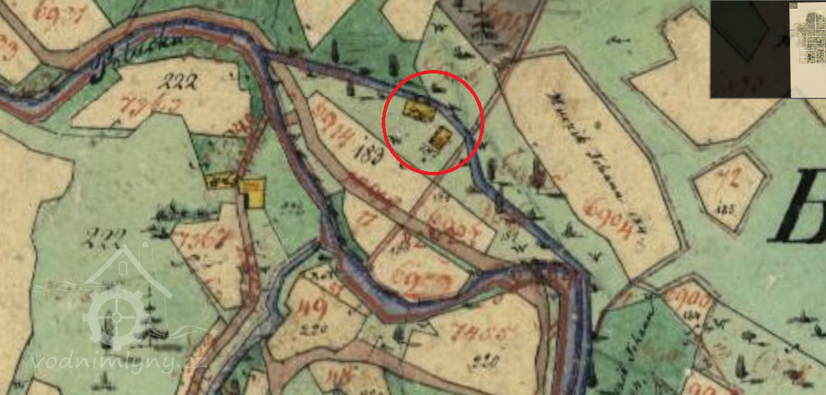 Malý novější mlýn u osady. Popisné číslo patrně později přeneseno na novější objekt ležící 200 m sz.