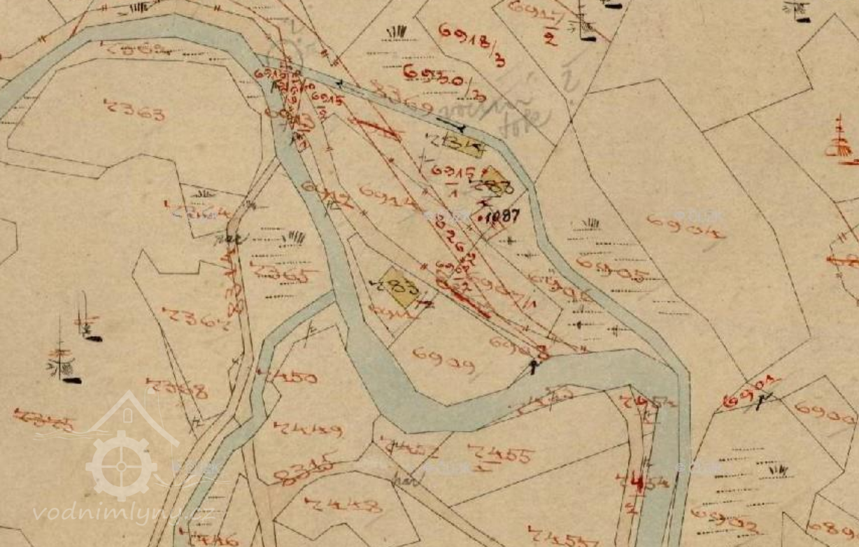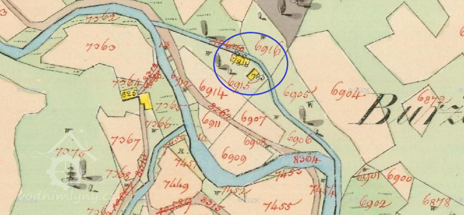 Popis1930: 1 kolo na spodní vodu, hltnost 0,15 m3/s, spád 3.4 m, výkon 2 HP