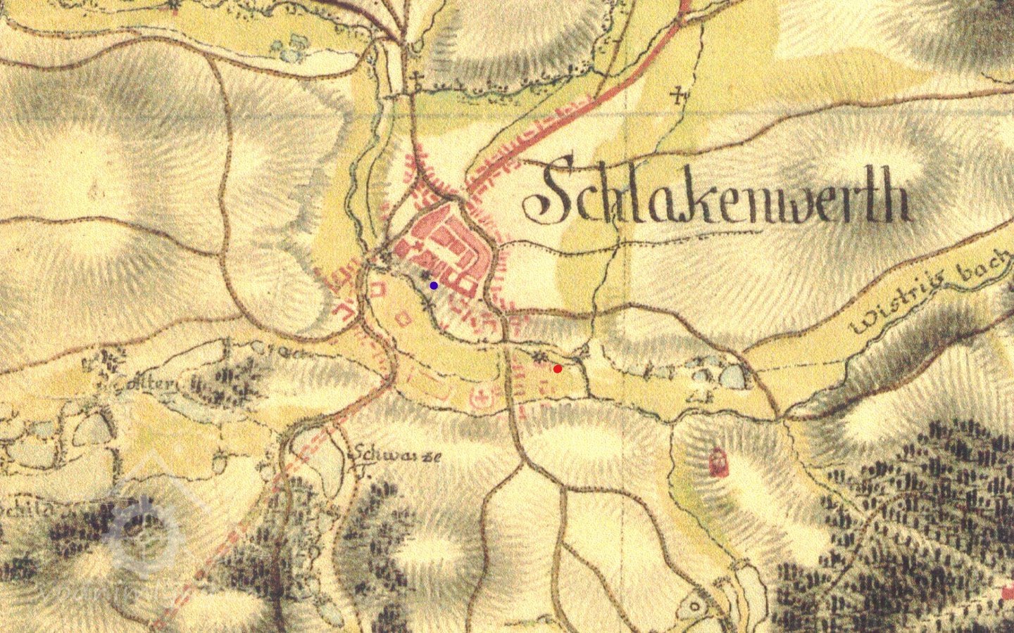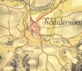 Zobrazen na mapě I. vojenského mapování.