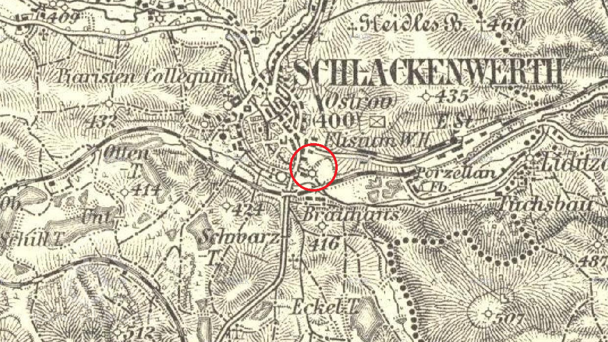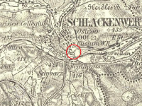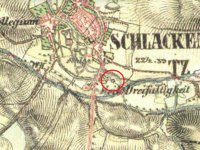 Zobrazen na mapě I. vojenského mapování.