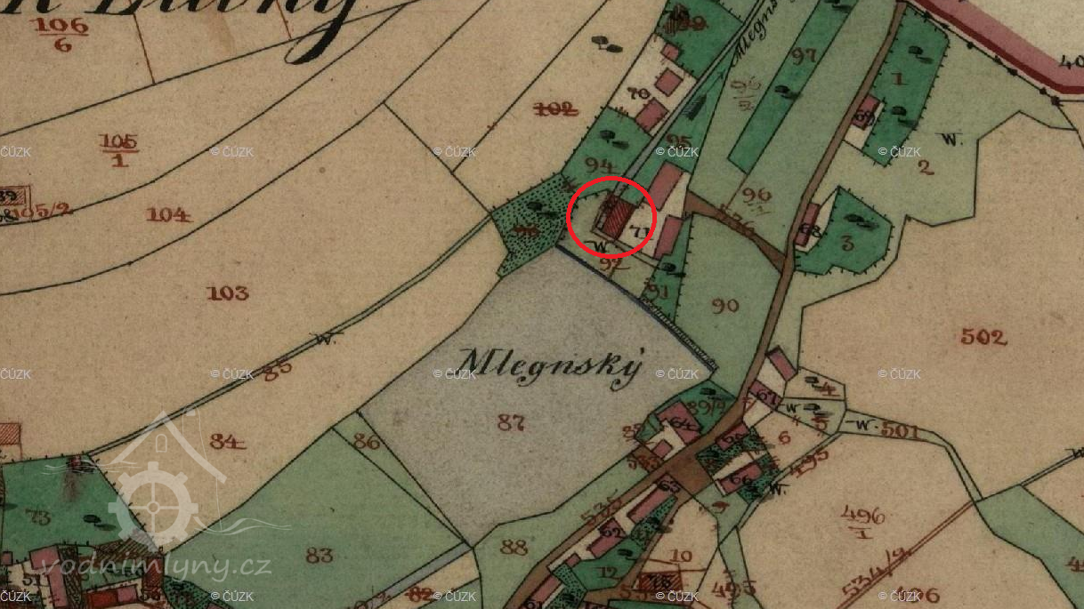 Nad mlýnem se nacházel rybník, který zanikl v poválečném období. Rybník se nazýval Mlejnský.
